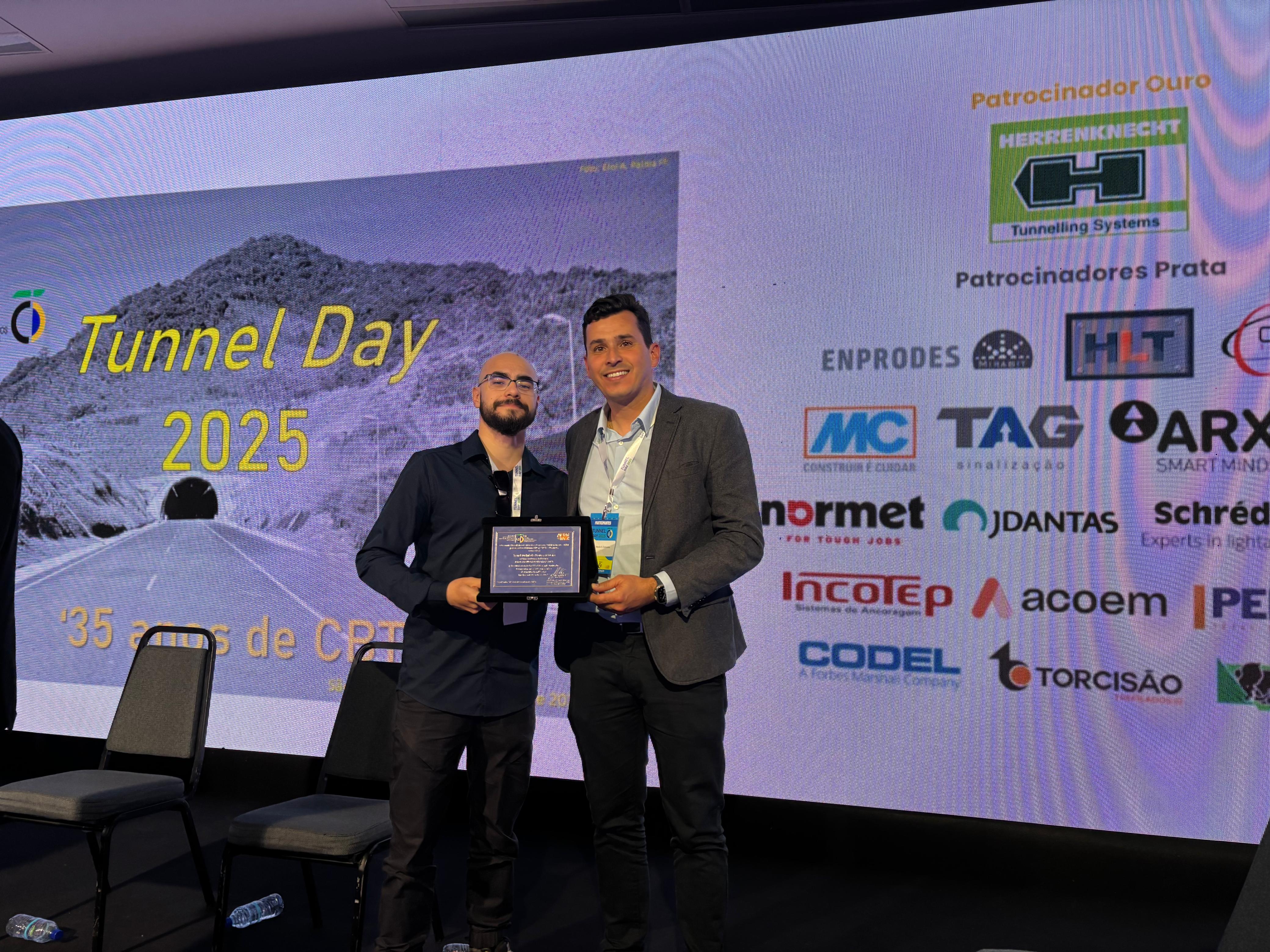 O Departamento de Geologia da Universidade Federal de Santa Catarina (UFSC) tem a satisfação de parabenizar o egresso Yan de Souza pela conquista do primeiro lugar no Prêmio Figueiredo de Ferraz, o mais importante reconhecimento nacional para Trabalhos de Conclusão de Curso na área de túneis e escavações subterrâneas. A premiação ocorreu durante o Tunnel Day 2025, evento que reúne anualmente profissionais, empresas e estudantes envolvidos com a engenharia subterrânea no Brasil.